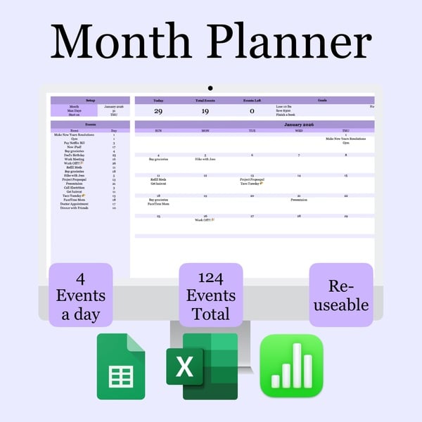Easy to Use Month Planner Spreadsheet